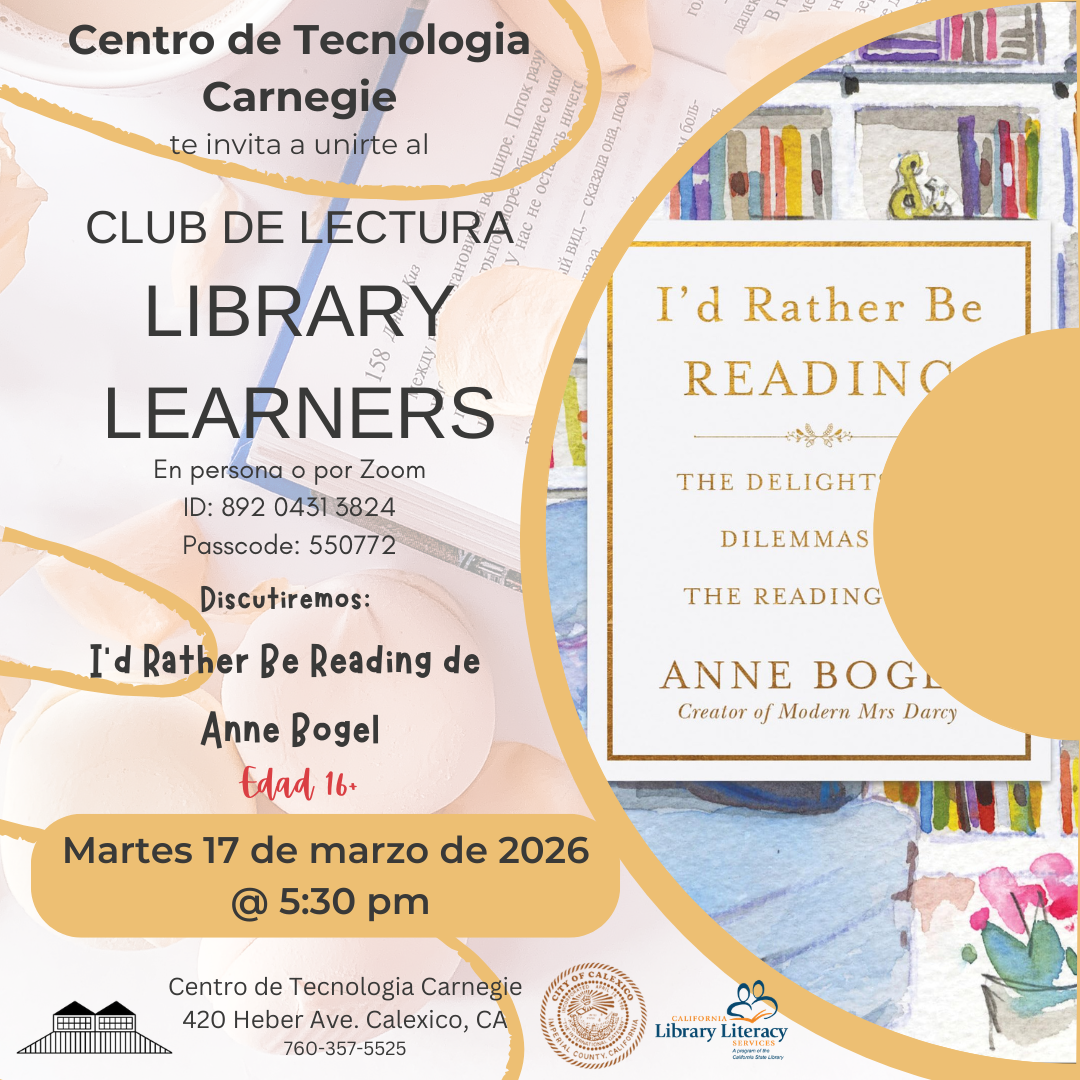 Lugar: Centro de Tecnologia Carnegie, 420 Heber Ave. Calexico, CA