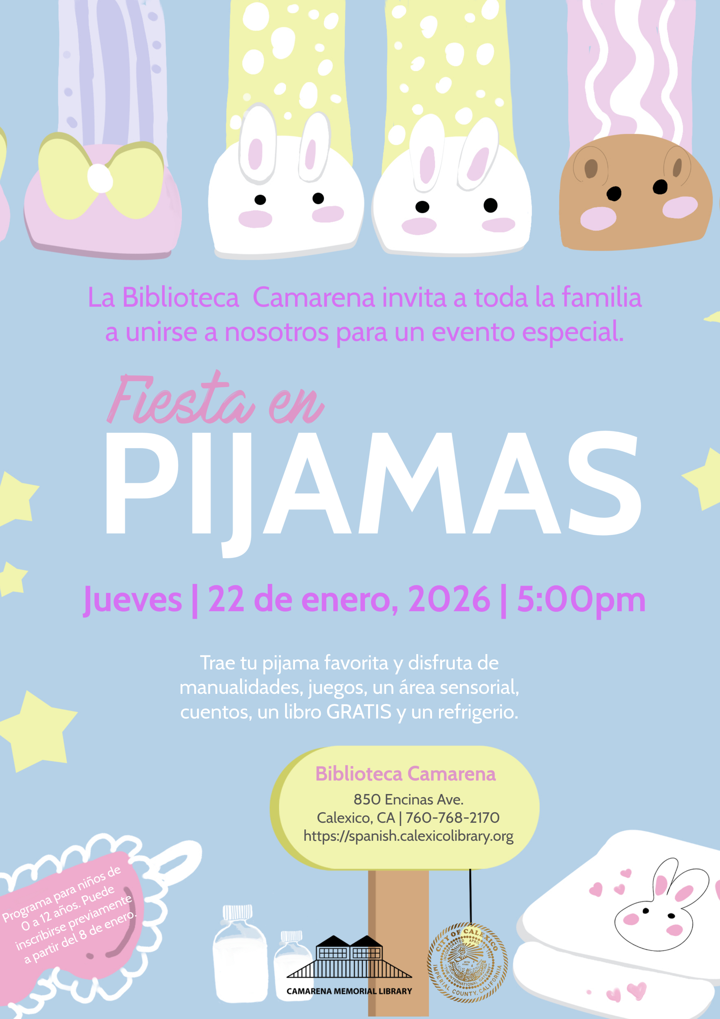 Ubicación: Biblioteca Camarena Memorial, 850 Encinas Ave. Calexico, CA 92231.