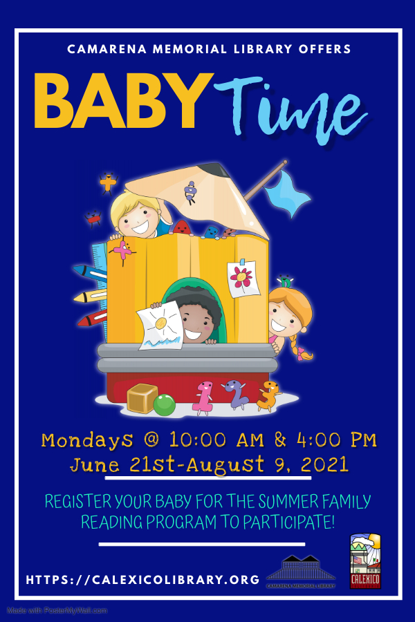 Biblioteca Camarena 850 Encinas Ave. Calexico, CA 92231 United States (760) 768-2170 Fax (760) 357-0404 Monday, August 9, 2021 4:00 pm to Monday, August 9, 2021 4:20 pm United States Audience Kids