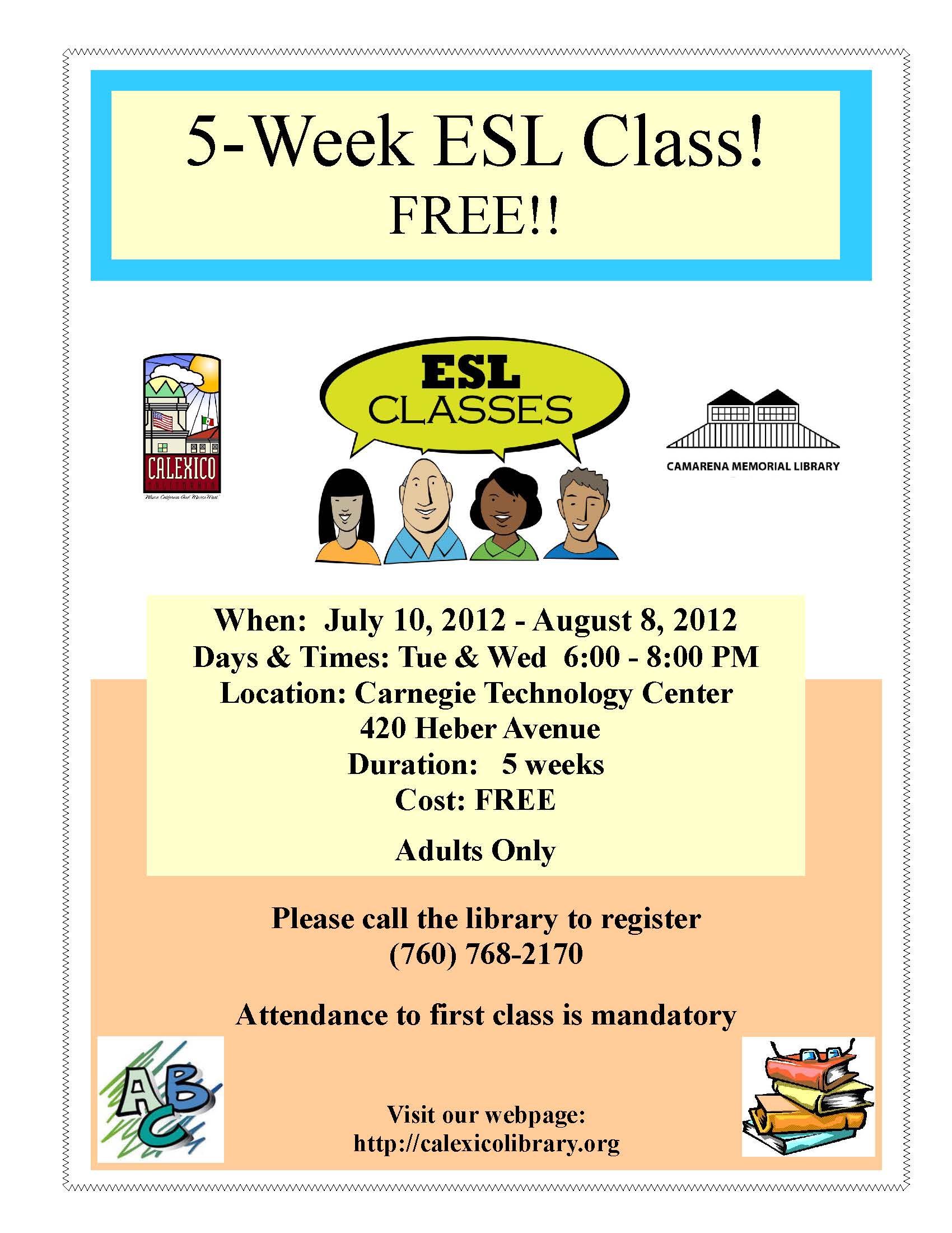 Tuesday, May 4, 2021 2:46 pm to Tuesday, May 4, 2021 3:46 pm United States Attachments ESLClassflyer.jpg (292.85 KB)