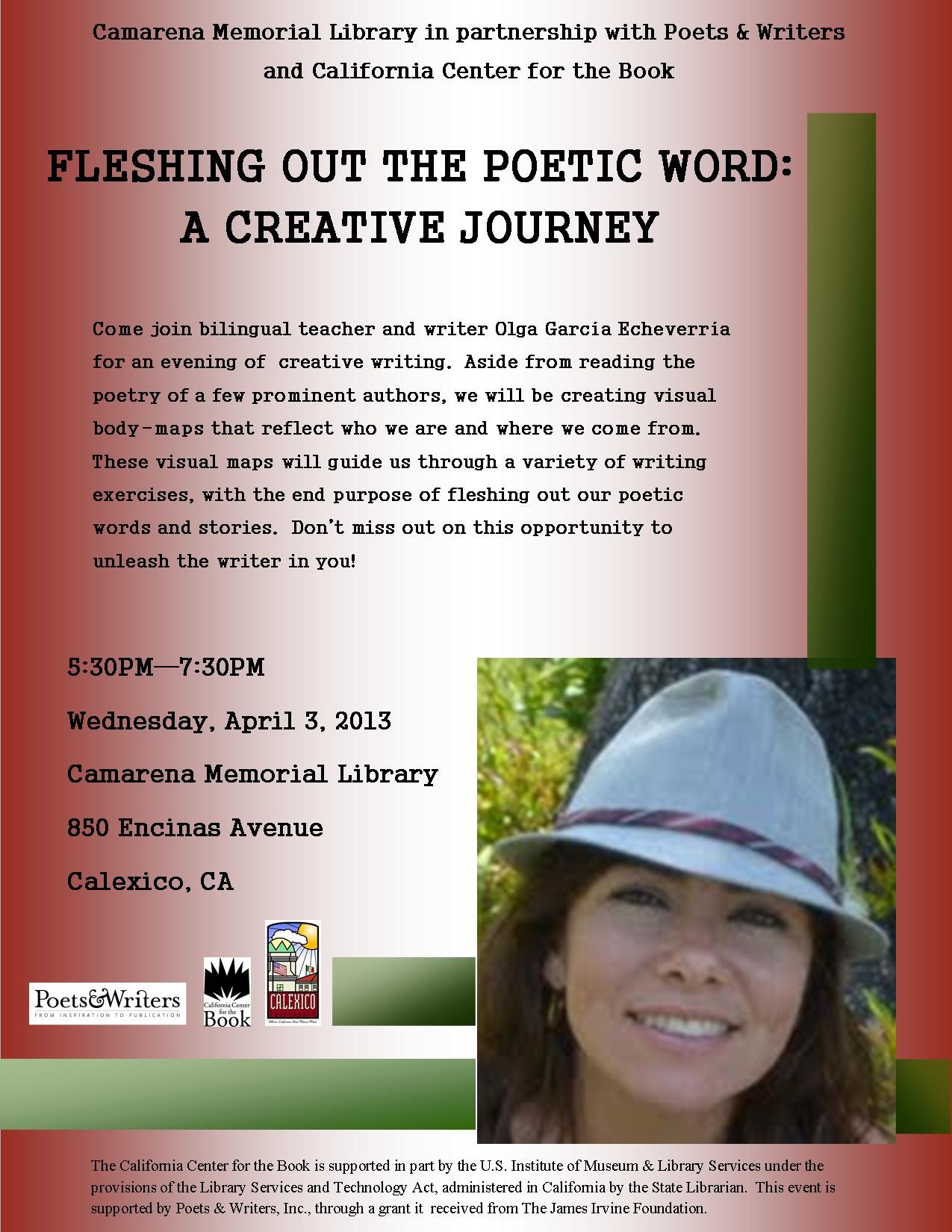 Tuesday, May 4, 2021 2:46 pm to Tuesday, May 4, 2021 3:46 pm United States Attachments 2013PoetryWorkshop.jpg (335.38 KB)