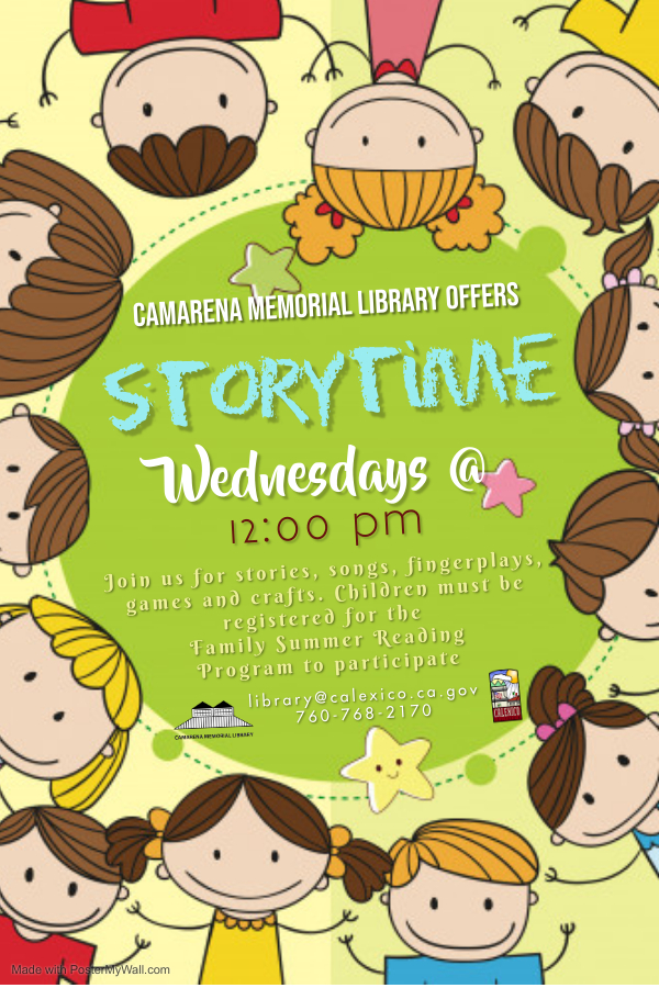 Biblioteca Camarena 850 Encinas Ave. Calexico, CA 92231 United States (760) 768-2170 Fax (760) 357-0404 Wednesday, August 4, 2021 12:00 pm to Wednesday, August 4, 2021 1:00 pm United States Audience Kids